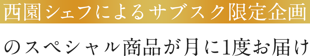 パティシエ西園シェフの季節の素材を使ったスイーツを毎月お届けする定期便です。お届けする商品はバターサンド、焼菓子など季節の素材を使ったラインナップを月替わりでお届けいたします。ここでしか食べられない限定スイーツも届きます。